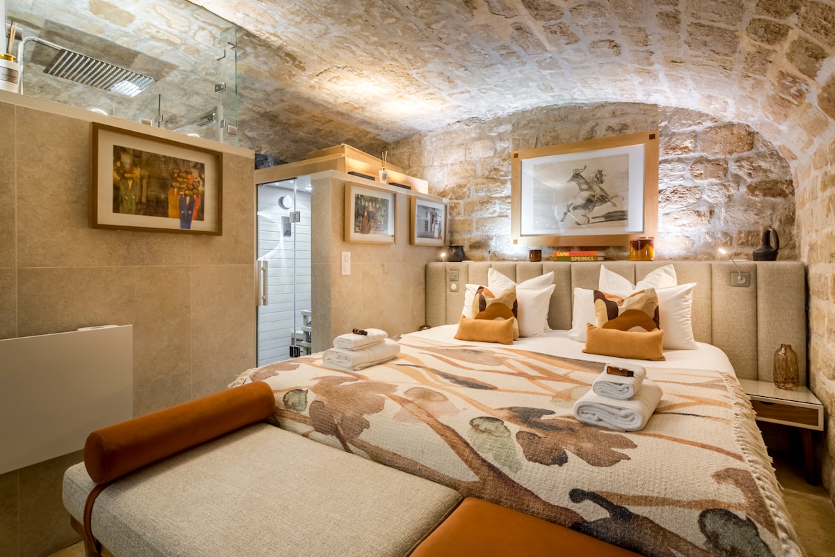 At the ground floor of a 18th century property, on two floors of 85sm, brand new house freshly designed by an interior designer. All the experience was made for a maximum independence and discretion. Private entrance, the house has an american kitchen on living room, a bedroom with view on the street, and a Luxury Parental Suite with private bathroom, tv, fast wifi and mini bar. As a Luxury Countryside House in the very heart of Marais, the « coolest street of Paris » says the new economist.