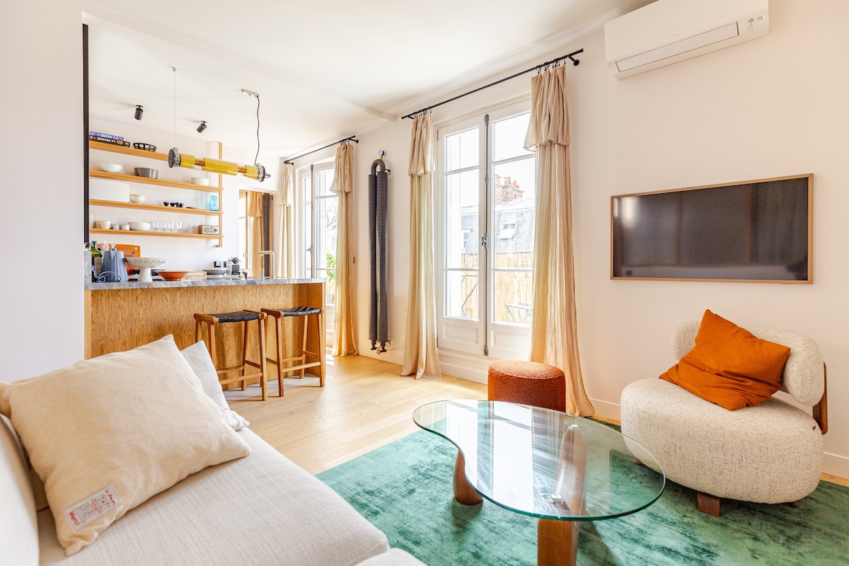Situé dans le coeur de Paris, à proximité de l’Opéra, des Grands Magasins et de Montmartre. La localisation centrale de cet appartement vous permettra de profiter pleinement de votre séjour Parisien. Vous séjournerai dans un appartement d’architecte, mêlant brutalisme et modernité dans un quartier typiquement Parisien. Cet appartement au calme est situé à proximité des tous les commerces et restaurants. Tout à était pensé pour vous offrir un séjour luxueux confortable et pratique Non adapté PMR
