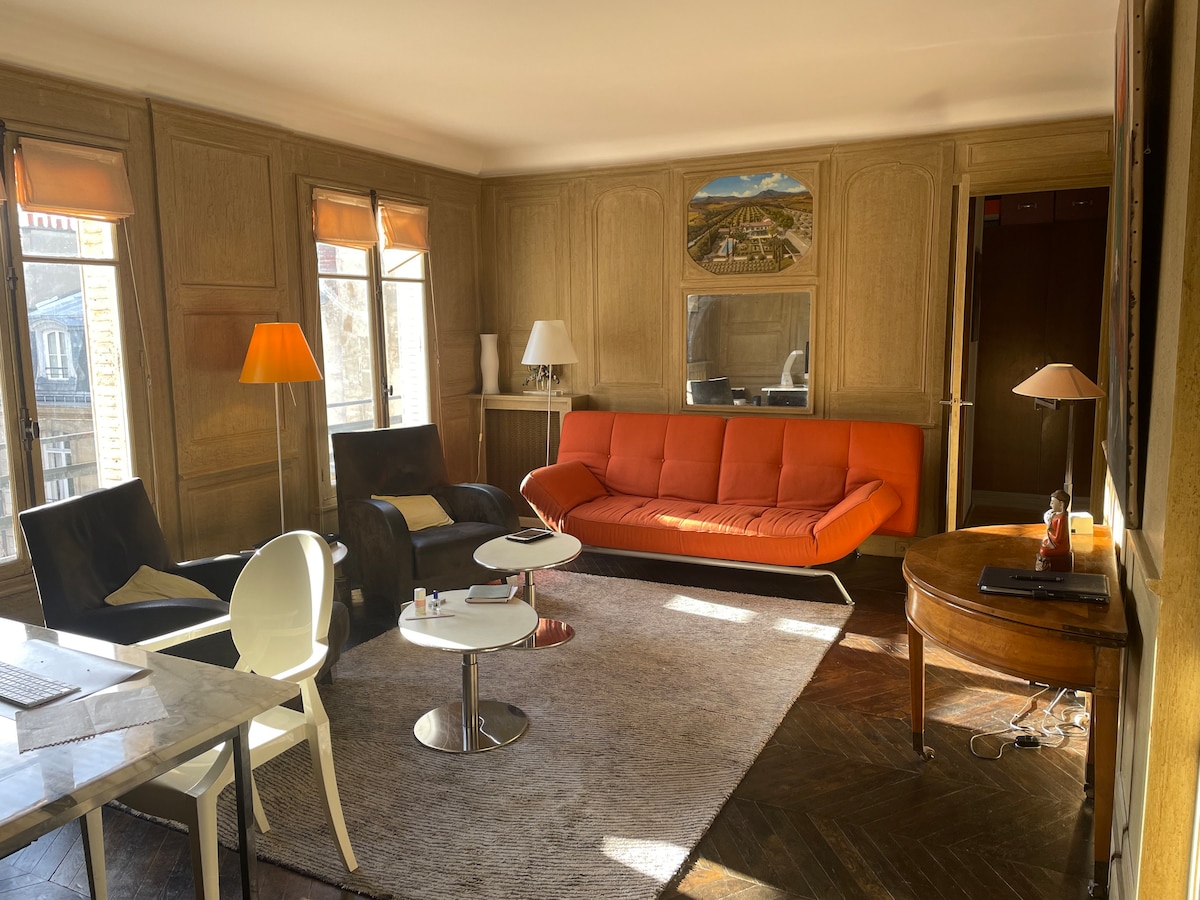 Magnifique 3 pièces entièrement rénové par architecte, avec une situation exceptionnelle en plein cœur du très beau et historique quartier de l’Opéra, à 5 minutes des plus belles places de Paris (Vendôme, Rivoli, Concorde, Louvre, Madeleine) et à 1 min des grands magasins G.Lafayette & Printemps. Appartement très lumineux avec une jolie vue et des prestations de qualité : clim, douches italiennes, 2 wc, matériaux nobles, Lits QueenSize, Fibre. Experience inoubliable en famille ou entre amis