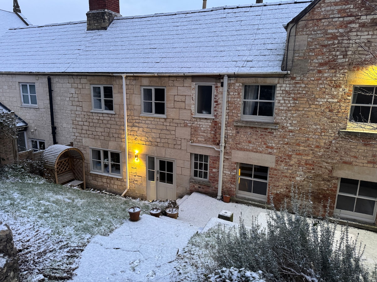The hayloft is very old but we have converted it into a 2 bed suite (one double bed & one big round bed on the mezzanine) with a 'shed bathroom' and a large lounge. It is on top of part of our own house (above the kitchen) but has a separate private entrance and a door onto the garden. There is no kitchen facility - think hotel rooms rather than self catering! It is right in the heart of the village a couple of hundred metres from good restaurants, ancient pubs and independent shops.