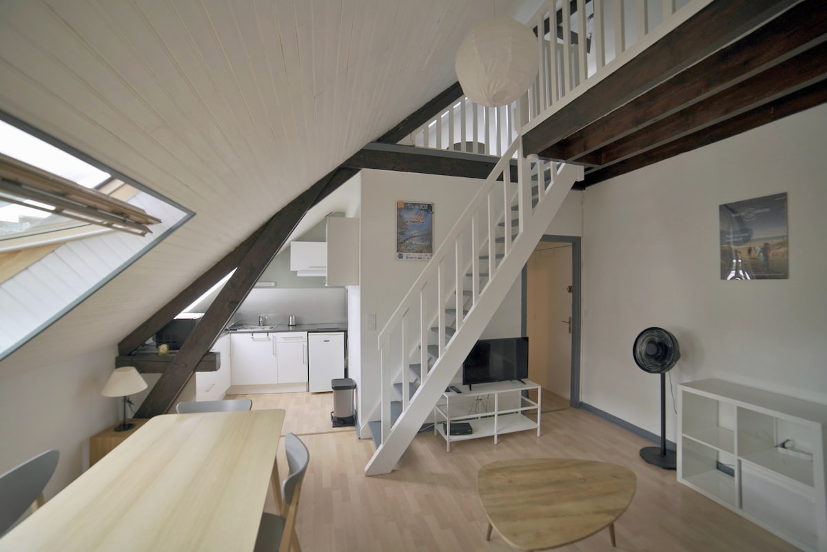Studio situé au 3 ème étage d'un Hôtel particulier du XVIII ème siècle dans le centre historique et piéton de Vannes. Atypique, lumineux, très calme et rénové. A proximité immédiate de la Cathédrale, du port, du marché (mercredi et samedi), des Halles des Lices, de nombreux restaurants ( pour découvrir les spécialités de la région) et de tous commerces, finalement tout est réuni pour que votre séjour soit inoubliable.