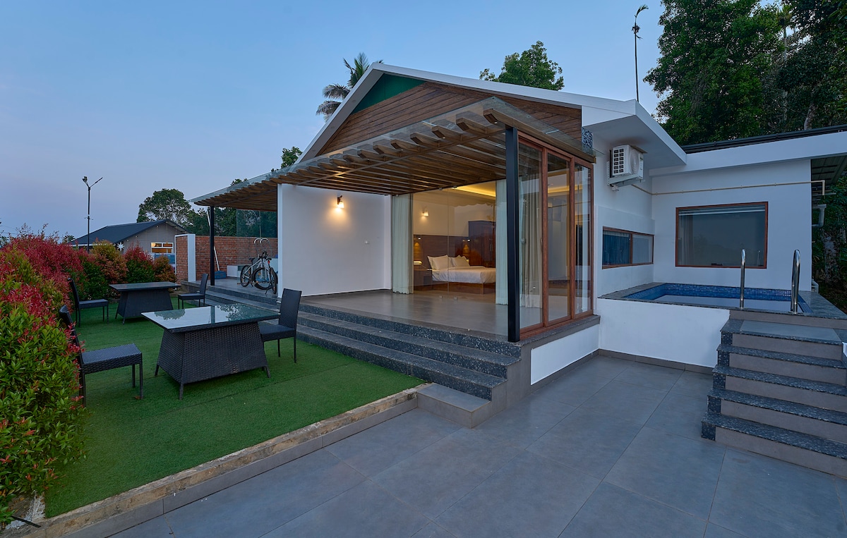 Unwind in this charming 2-bedroom stone villa nestled amid the misty tea gardens of Vagamon. Perfect for couples, families, or nature lovers, this private hillside retreat offers panoramic valley views, a spacious sit-out, and total serenity. Enjoy the cool breeze, lush greenery — all from your doorstep. ✔ Scenic hill view ✔ Private driveway & sit-out ✔ Surrounded by tea plantations ✔ Ideal for nature escapes & digital detox Experience a rejuvenating stay in Vagamon’s lap of nature.