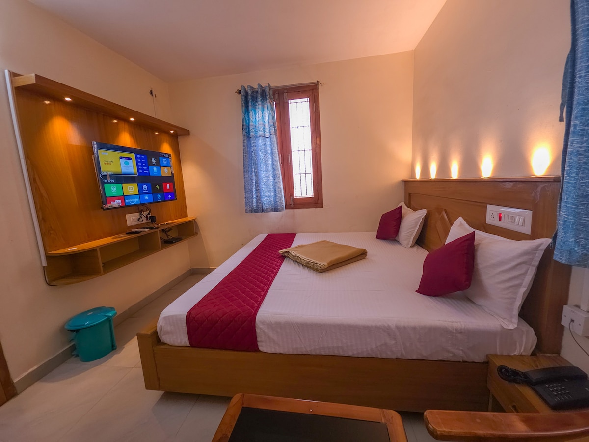Relax in this High-Floor(no elevator) Double Room with a private balcony overlooking green grassland of Munnar. Complete with an attached bathroom for your convenience and amenities like Wi-Fi, android TV, hot water, toiletries and towels . Situated in the center of Munnar at a walkable distance of just 300meters from Munnar bus stop, you're just steps away from the town's vibrant atmosphere, close to all the action –restaurants, spice and chocolate shops and popular destinations.