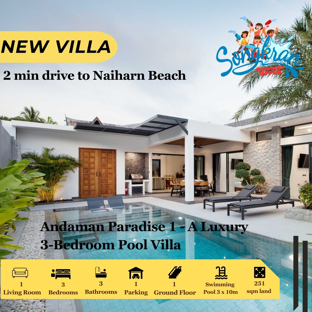 全新3卧豪华泳池别墅,奈阳( Naiyang )/奈通海滩( Naithon Beach