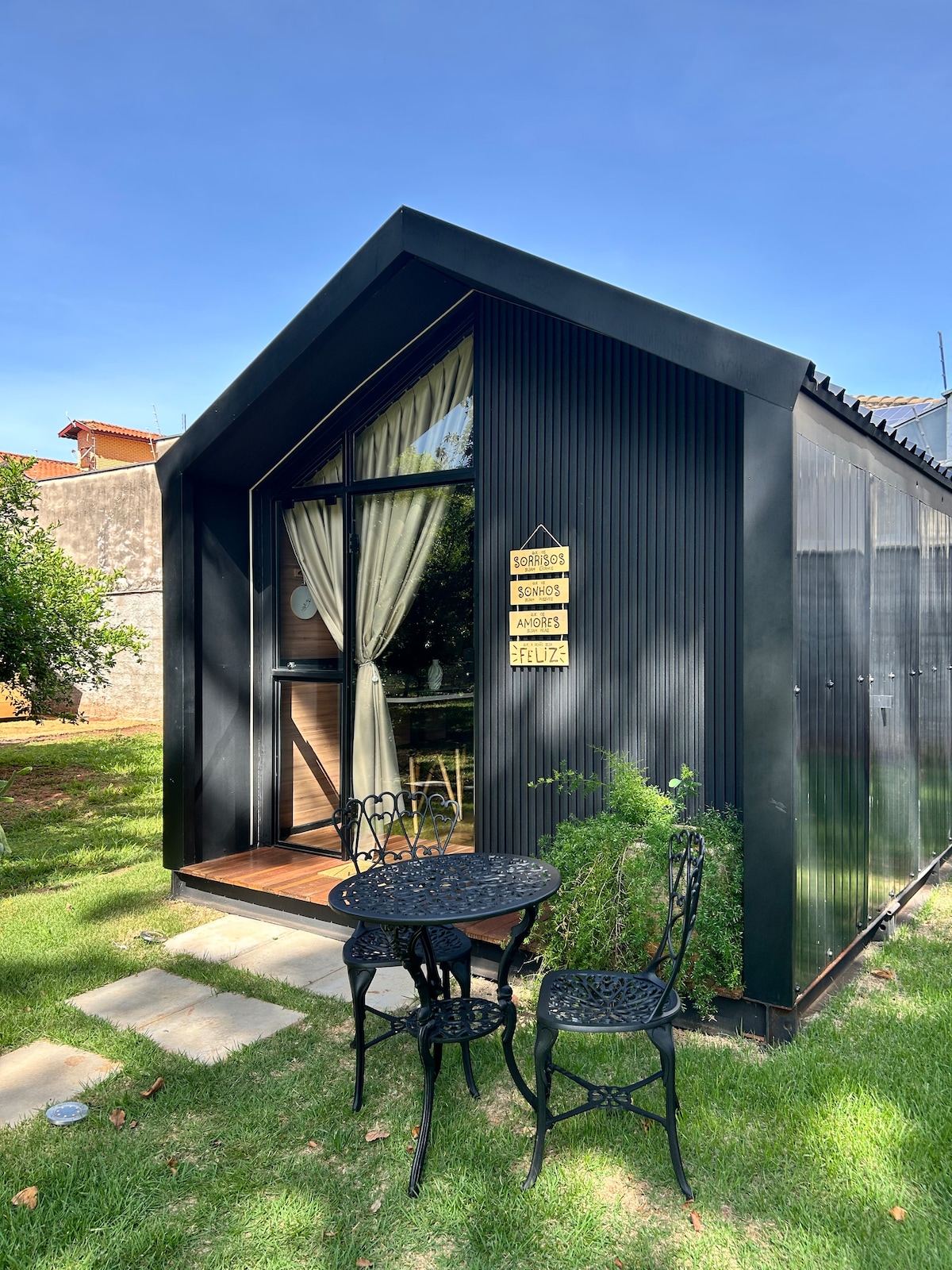 Experimente a magia da Tiny House do Sítio Rosa Clara, uma construção nova que promete uma estadia inesquecível. Relaxe na jacuzzi aquecida com uma vista espetacular para o lago e aproveite sessões privadas no cinema exclusivo dentro da sua própria casinha! Este é o lugar ideal para se desconectar, relaxar e recarregar as energias! Venha vivenciar o paraíso e desfrutar de uma experiência única! Além disso, com nossa antena Starlink, você estará sempre conectado à internet de alta qualidade.