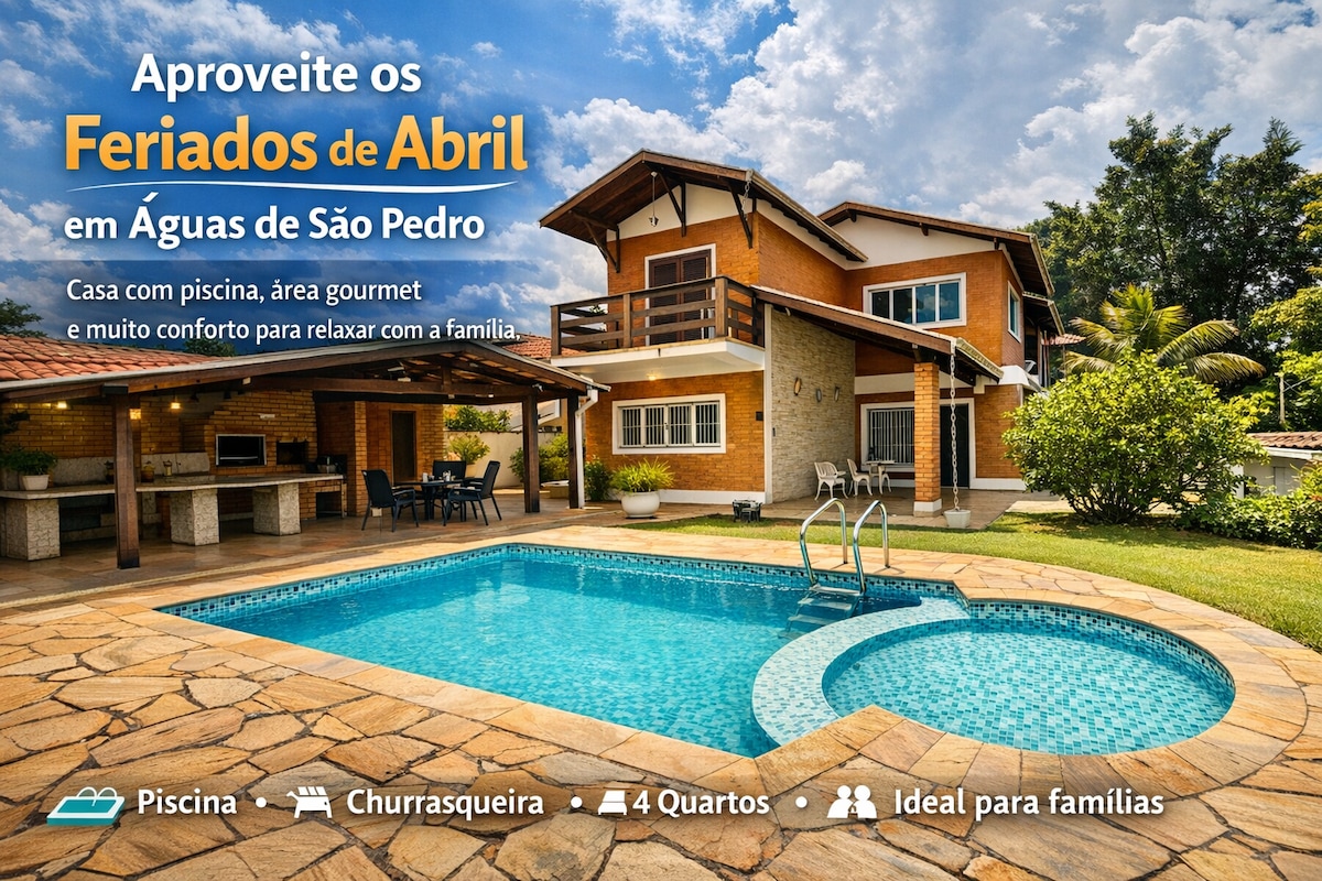 Relaxe, desacelere e viva momentos inesquecíveis em Águas de São Pedro. Conhecida como uma das cidades mais tranquilas e acolhedoras do Brasil, Águas de São Pedro é o destino ideal para quem busca descanso, bem-estar e qualidade de vida. Nossa casa foi pensada para proporcionar conforto e lazer em cada detalhe. O grande destaque é a jacuzzi externa exclusiva, perfeita para relaxar após um dia de passeios, caminhadas ou simplesmente para curtir o clima da cidade.