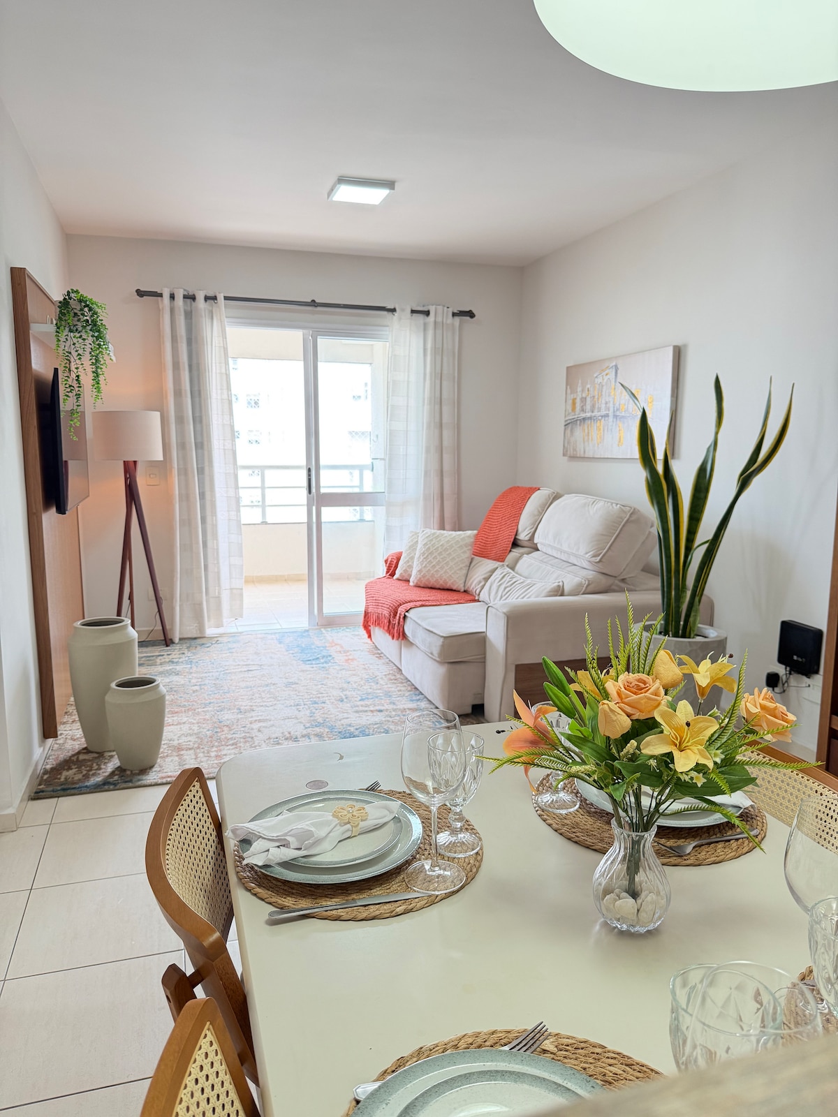 Apartamento moderno de 82m², 2 dormitórios (1 suíte), totalmente mobiliado e com cozinha equipada. Varanda ampla, suite com sacada, móveis novos, cama confortável, Smart TV e Wi-Fi rápida. Espaço para home-office, aquecimento a gás e vaga de garagem. Localização excelente, em frente ao Shopping Colinas e com fácil acesso às vias da cidade. Ideal para até 4 pessoas. Conforto e praticidade em região nobre! Piscina, Sauna, Mercadinho, Portaria 24 horas, 2 Vagas cobertas.