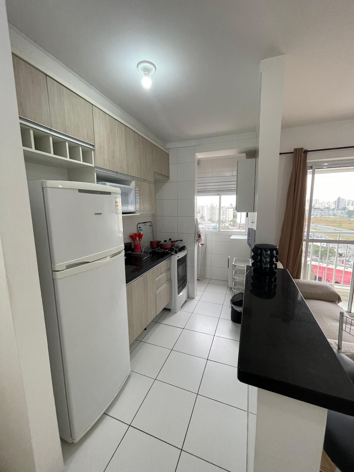Espaço gostoso e aconchegante para individual ou casal. Portaria 24 horas. Ar condicionado no quarto. Localizado em frente ao shopping Colinas. Supermercado Tauste com ótimos preços bem pertinho, Assai atacadista e Pão de Açúcar. Dá para ir a pé. Tem também farmácia e padaria, próxima. Oba hortifrutis no bairro. Mac Donald na mesma calçada.