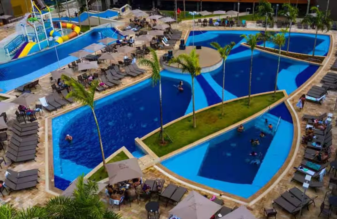 Viva momentos inesquecíveis neste lugar único e ideal para famílias. Taxa para usar parque aquático R$ 99,00 por dia (por apartamento).- isso você só encontra aqui Hot Beach Suítes Ótima localização Para até 6 pessoas 1 quarto com: 1 cama de casal e 2 sofás cama 1 Banheiro Ar condicionado Churrasqueira na varanda 2 TVS com tv a cabo Playground Sala de games Sala de jogos Academia 1 vaga de estacionamento coberto Parque Hot Beach Entrada separada, não pega fila