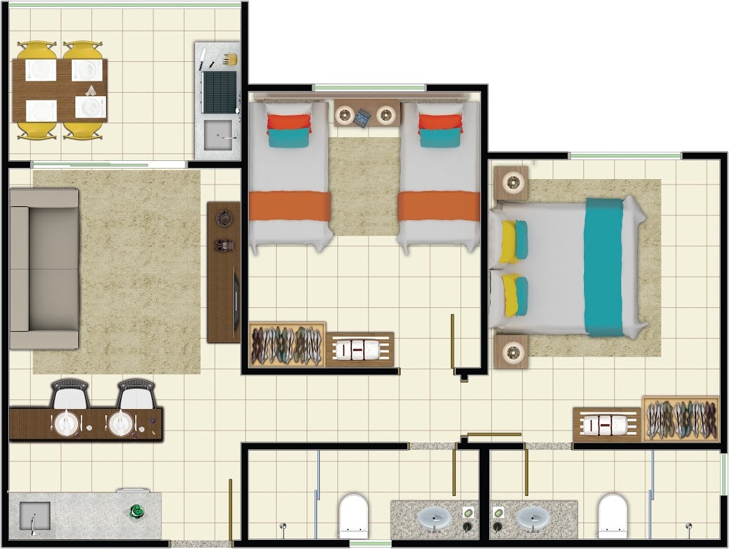 APARTAMENTO DE 2 QUARTOS RESORT DE LUXO