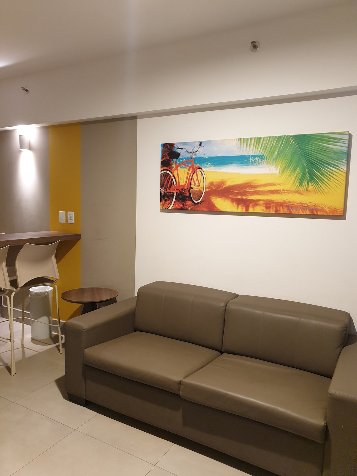 Amplo apartamento, ideal para famílias com até 5 pessoas, o apto conta com um quarto, sala, cozinha estilo americana, banheiro e varanda.O quarto conta com uma cama casal e uma solteiro, na sala temos um sofá cama para até duas pessoas, a cozinha é equipada com microondas e frigobar. OBS. Cozinha não possui utensílios como talheres, copos e pratos. Todas as tomadas são 220V