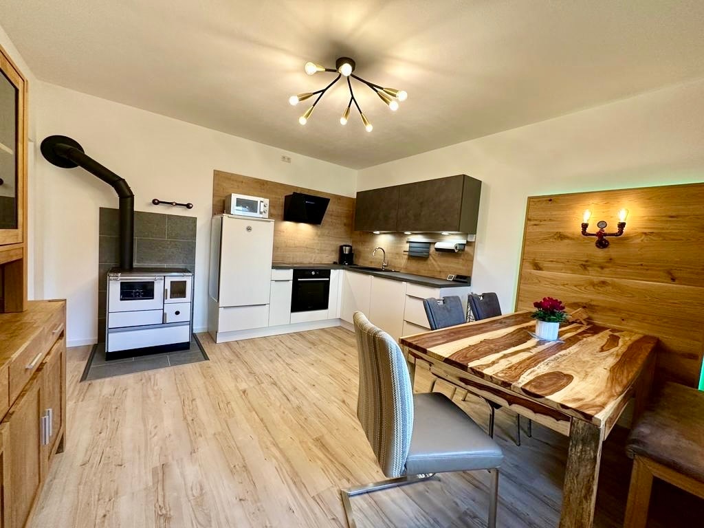 Wir bieten eine 3,5-Zimmerwohnung in komfortablem Ambiente, die als Ferien- oder Business-Wohnung (Home Office) geeignet ist. Eine große Wohnküche mit direkten Übergang zum Wohnzimmer, einem Bad u. 3 Schlafzimmern auf ca. 100 Quadratmeter verteilt über 2 Etagen, viel Platz für bis zu 5 Gästen. 1 kleines Kind könnte auch noch untergebracht werden. Ein nach Süden ausgerichteter Balkon rundet die Sache ab. Zur Selbstversorgung dient eine moderne, gut ausgestattete Küche. Parken vor der Tür.