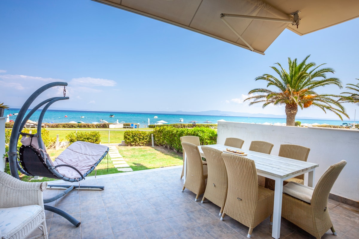 Olive White Villa offers accommodation in Kassandra Halkidiki, just outside Hanioti Village. The upper floor boasts views of Toroneus Gulf. Olive White Villa is located 70m from the beach and 1,7klm from Hanioti Village. The property is suggested to families as it is kids friendly. It belongs to a wonderful complex of houses with olive trees in a sunny garden with lush green grass around the place. Don't miss to enjoy sunbathing while kids are playing in the swimming pool just in front of you!