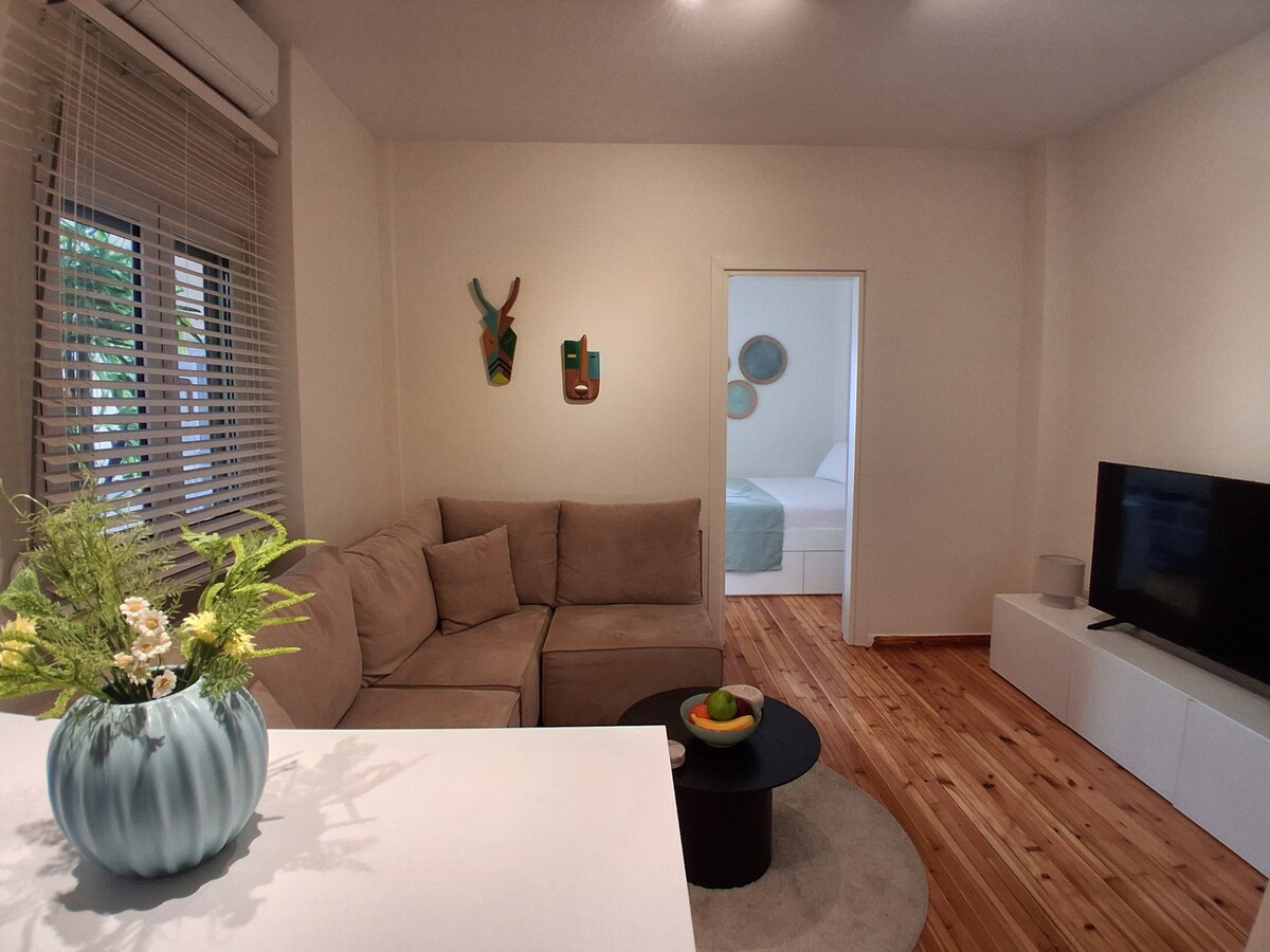 Comfortable apt right in the BEST neighborhood of the city center! -2 steps from Navarino square & Tsimiski street - the city's shopping area -6 min walk from the Waterfront & the White Tower ! -Spacious, bright with 2 queen size beds (1 bed + 1 sofa bed) -Wifi 300mbps, AC with ionizer, insect screens, water filter -Big supermarket underneath -Parking at economical rates -Recently renovated, Fully equipped Ideal for couples, single travelers, executives, friends & families with children.