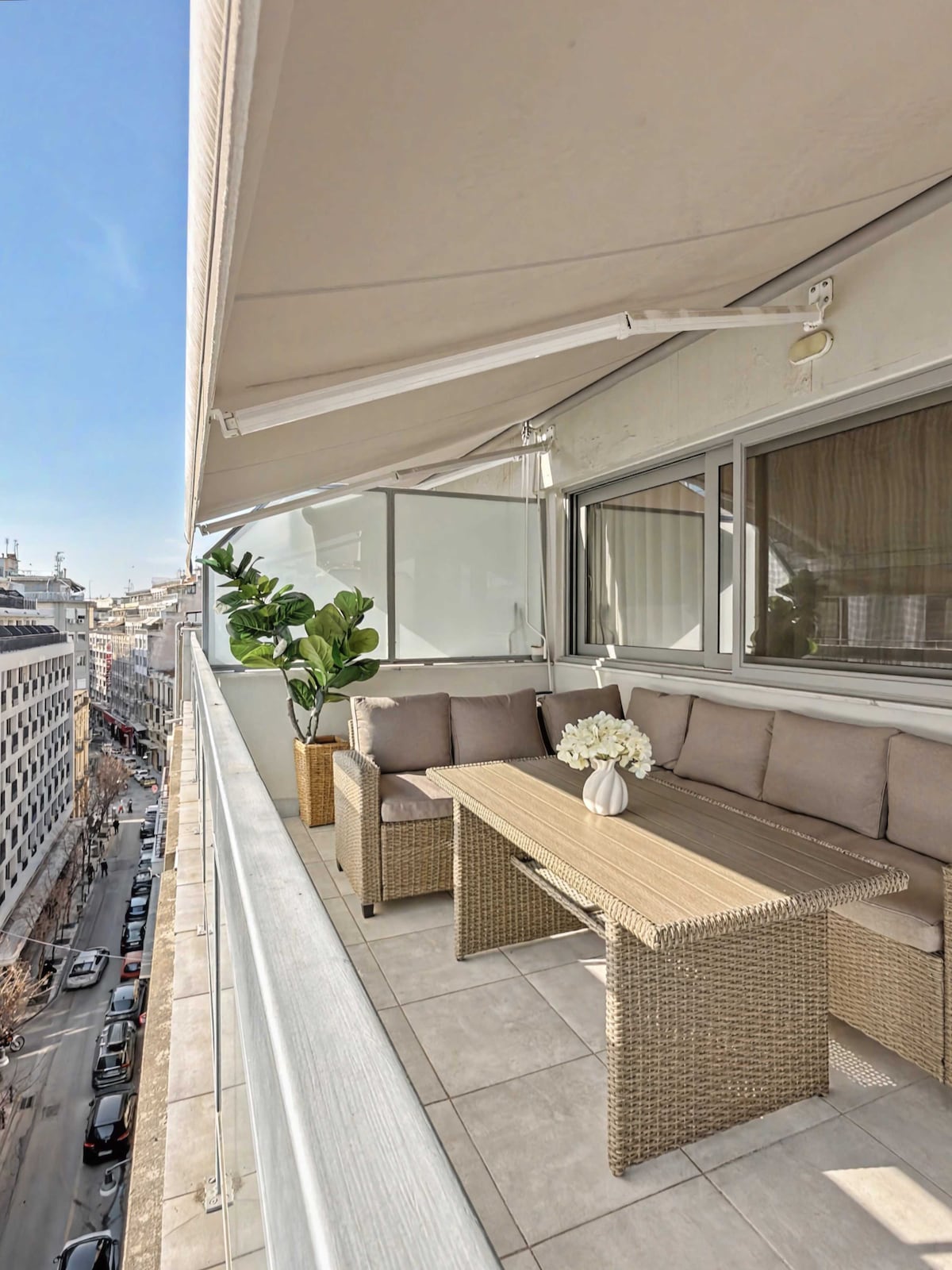 Unique 1 Bedroom fully equipped apartment on the seventh floor of a 2020 renovated building with a breathtaking terrace balcony. High speed internet, premium amenities, a luxurious queen size bed, and your very own Netflix account are but a few things we offer you. Luminous, spacious, with everything you might require to enjoy your stay in the heart of Thessaloniki's social life, only 5 minutes away from Aristotelous square and 2 minutes from the seafront. Welcome and enjoy your stay!
