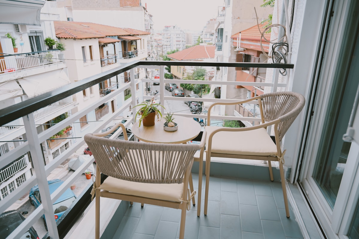 Welcome to our modern 2 bedroom apartment in the heart of Thessaloniki, ideal for families, groups of friends or anyone who wants to enjoy the vibrant atmosphere of the city. Accommodating 4 to 6 people, the apartment has two comfortable bedrooms, a fully equipped kitchen and a modern living room. The highlight of the apartment is the beautifully renovated balcony which features a private Jacuzzi, elegant and spacious living room, BBQ and offers stunning views of the Seih Sou.