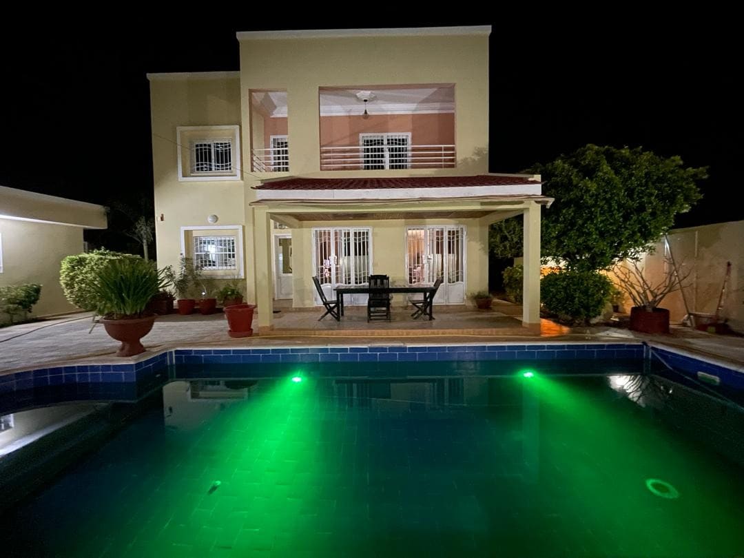 Faites une pause et détendez vous dans cette villa paisible. Profitez de l’élégance d’une époque révolue tout en séjournant dans cette villa calme et sécurisée. Magnifiquement équipée et dotée d’une belle piscine , de 4 chambres meublées avec salle de bain, d'un salon, d'une cuisine, de deux garages. Le tout dans une Résidence calme et sécurisée.