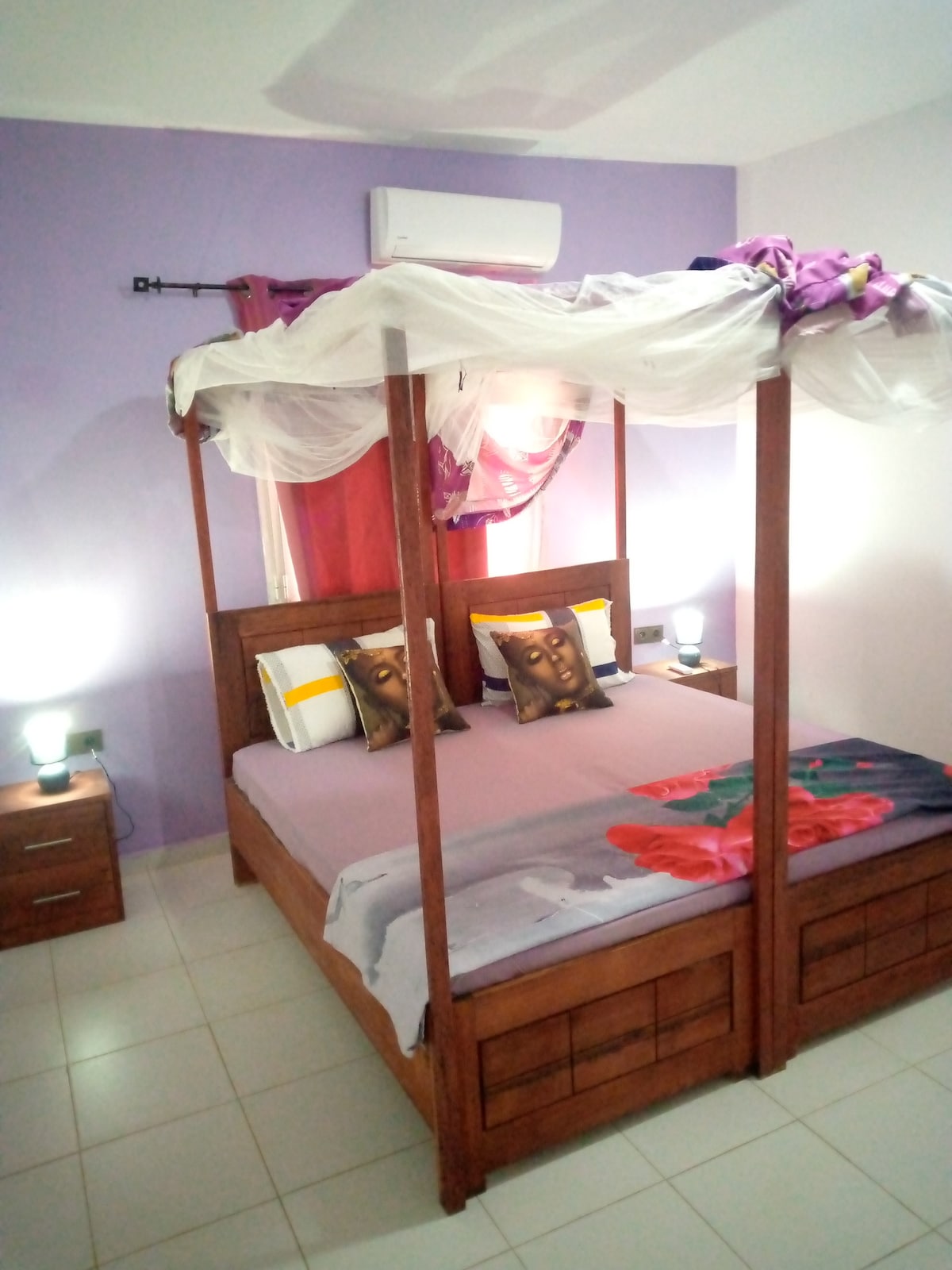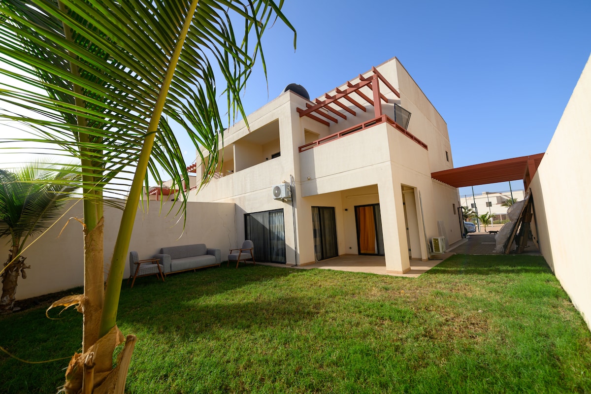 Belle villa familiale moderne offrant confort et détente. Elle dispose de 4 chambres, d’un grand salon convivial, d’une cuisine entièrement équipée et d’un jardin agréable. Une grande terrasse permet de profiter de repas en plein air ou d’événements. À l’extérieur, vous trouverez des espaces de loisirs avec terrain de football, basketball, aire de jeux pour enfants et zone pour vélo. Maison sécurisée avec accès contrôlé et internet haut débit Starlink. Idéale pour familles ou groupes.