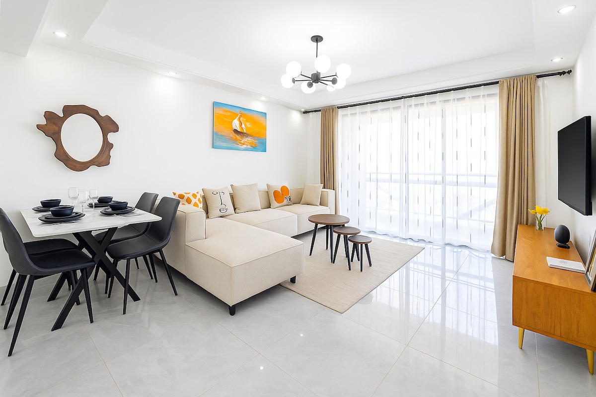 Located in the suburban Lavington area, this new and tastefully designed apartment is perfect for guests on business or leisure. The breathtaking views through the ceiling to floor glass windows welcomes a zen mood from either bedrooms or the living area. On a clear day you get to see the infamous wind turbines on Ngong Hills. Smart door lock installed that is both secure and eases check in. What You See is What You Get ;)