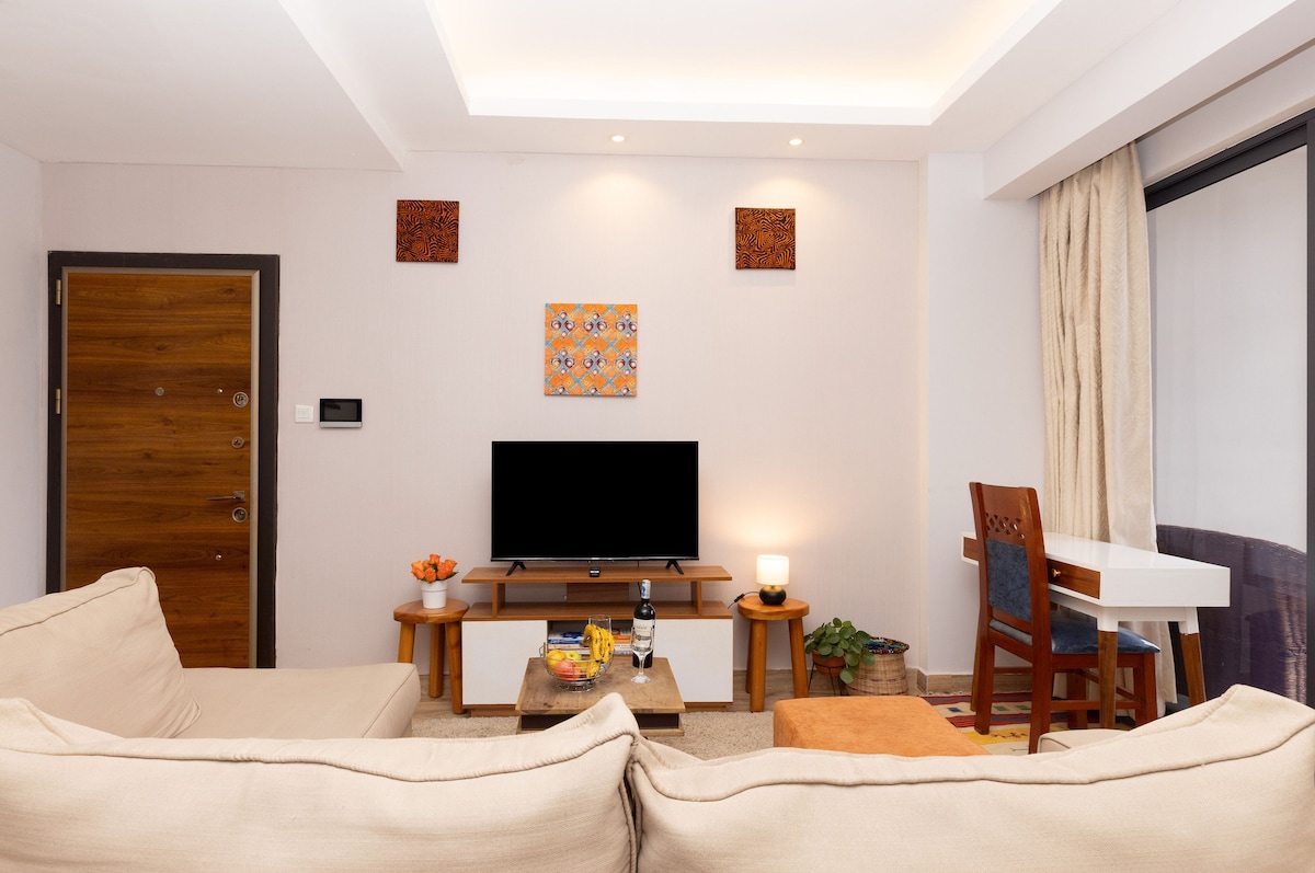 Welcome to the 17th-floor Bohemian Home in Kilimani. Here's what's on the menu: 🌅17th floor breath taking sunset view 🛒🛍️walking distance to Yaya Center 🛋️ private balcony comfort 🏋🏾♀️Fully equipped gym 🏌🏽♂️⛳️indoor golf 🏓Ping Pong 🚀Fast WIFI 🍿Netflix 💼Working space 🧑🏾🍳Turkish restaurant on the premises 💆🏾♂️💆♀️ Spa & Massage services on the rooftop 🎲 📚 Books and Games 🎨🪴Original art and plants ☕️Coffee maker 🍳fully equipped kitchen 🛌Cozy Chiropedic mattress 🧹Cleaning services at your convenience, & more…