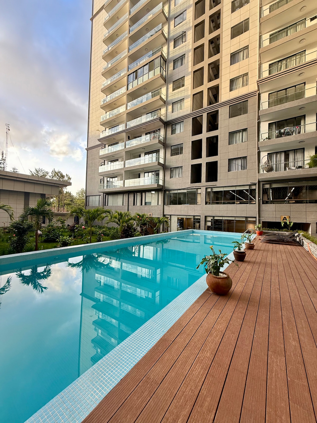 Wake up on the 14th floor to sweeping views of Nairobi and enjoy a modern, centrally located stay steps away from the best of Westlands. Restaurants, coffee shops, offices, and shopping are all within easy reach. Whether you’re here for business or leisure, you’ll love the fast WiFi, and easy access to the city. Stay productive at your desk, then head upstairs to the rooftop gym for a workout with stunning skyline views. Unwind with a refreshing dip in the pool or relax and take in the sunset.