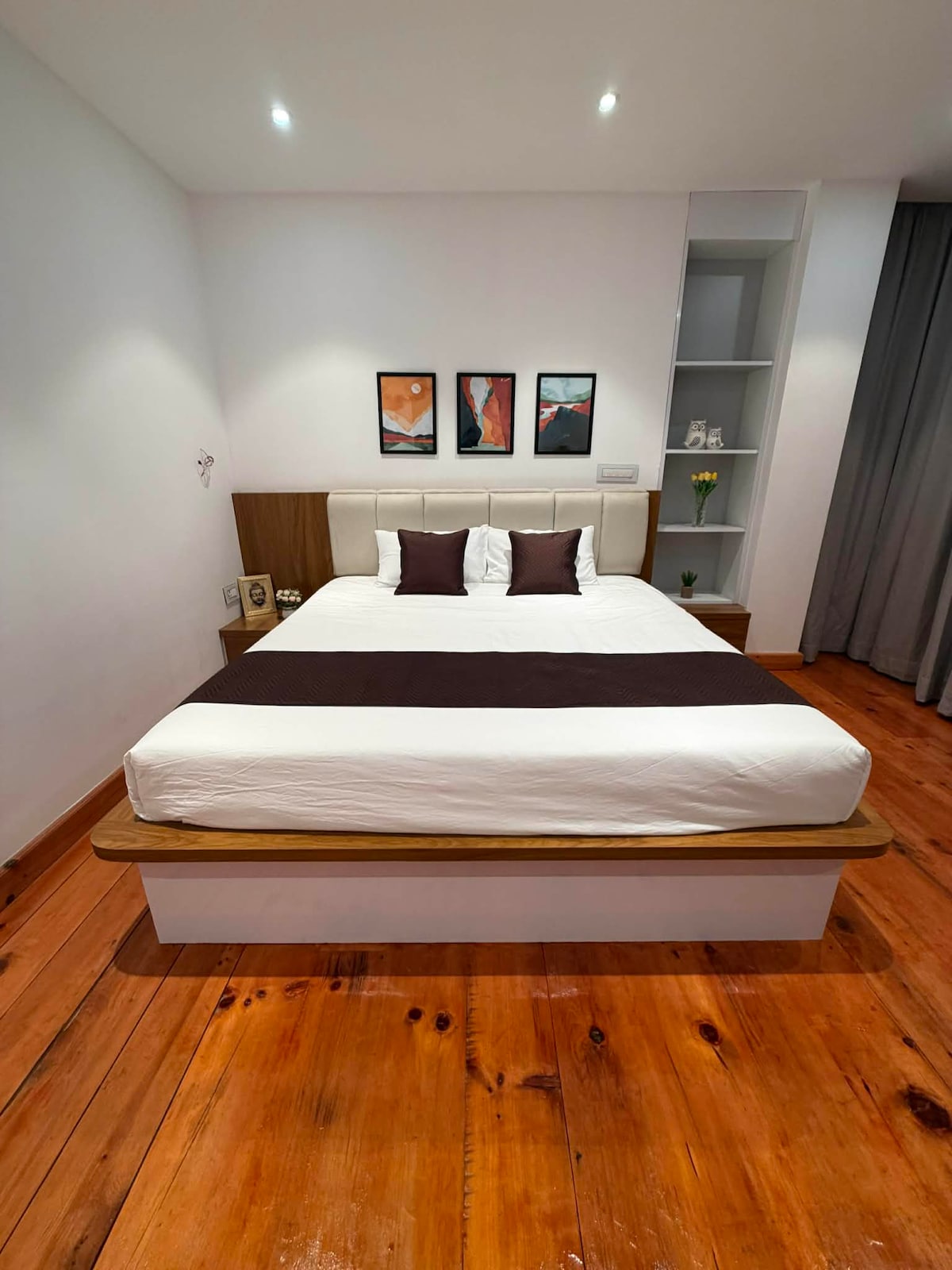 Peaceful, new & modern 4-bedroom apartment. Has 2 airy bedrooms with private bath each, and 2 cozy wood panelled bedrooms (one with an attached balcony). Comes with a spacious living room, modular kitchen and large balcony. Only 10 minutes ride from the city center, this safe place is right next to a scenic hiking trail. Close by some of the most popular restaurants and bars in Thimphu. Ideal for both short time and long term stays, digital nomads, families and holiday makers.