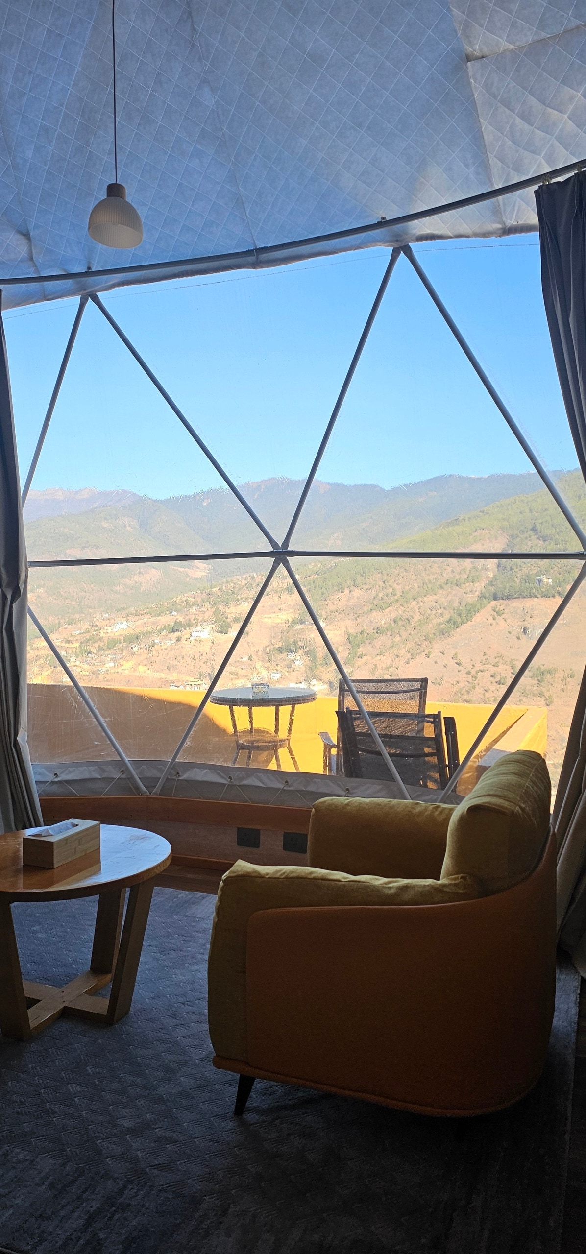 Panoramic view of Thimphu City and valley. Very peaceful, away from hustle and bustle of the city. Decent neighbourhood, safe and secure. Enjoy a blend of Bhutanese architecture and modern amenities. Ample basement parking. Access to rooftop space for evening tea. 24x7 hot and cold water. Open kitchen adjacent to living room.