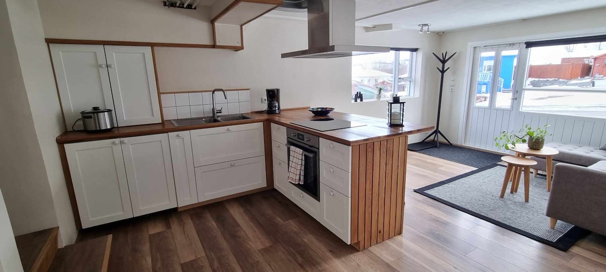 This modern and privately owned 106 m2 luxury cottage is located right above Akureyri and has gorgeous views over town and the surrounding nature. The house comes with a fully equipped kitchen, flatscreen TV and Wifi, entertainment system/board games and a cozy indoor hot tub to relax in after a long day.