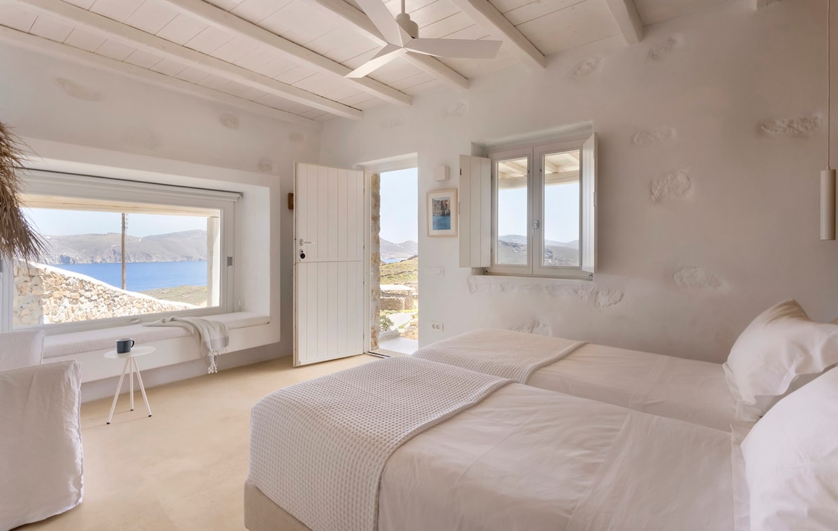 Kick back and relax in this calm, stylish space. Το σπίτι βρίσκεται στα Γλυφά της Πάρου, νότια του νησιού. Απέχει 60 μέτρα από την παραλία (2 λεπτά περπάτημα) μέσα από ιδιωτικό μονοπάτι μέσα στο κτήμα. Διαθέτει 2 υπνοδωμάτια και ένα μπάνιο. Είναι πλήρως ανακαινισμένο κυκλαδίτικης αρχιτεκτονικής και μοντέρνας αισθητικής σπίτι. Έχει ιδιωτική βεράντα και τραπεζαρία με απεριόριστη θέα στην θάλασσα. Διαθέτει πλήρως εξοπλισμένη κουζίνα για να απολαύσει κάποιος τα γεύματα του στο σπίτι.