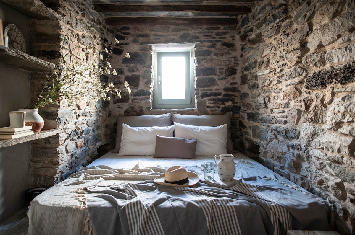 Do you wish to have the vocation of your life? If yes, choose this traditional, made of stone beach house of 50 sqm, literally Ideal for either short or long term Rental, in the Centre of Cyclades, Syros. It's next to a small, pictureaque beach.