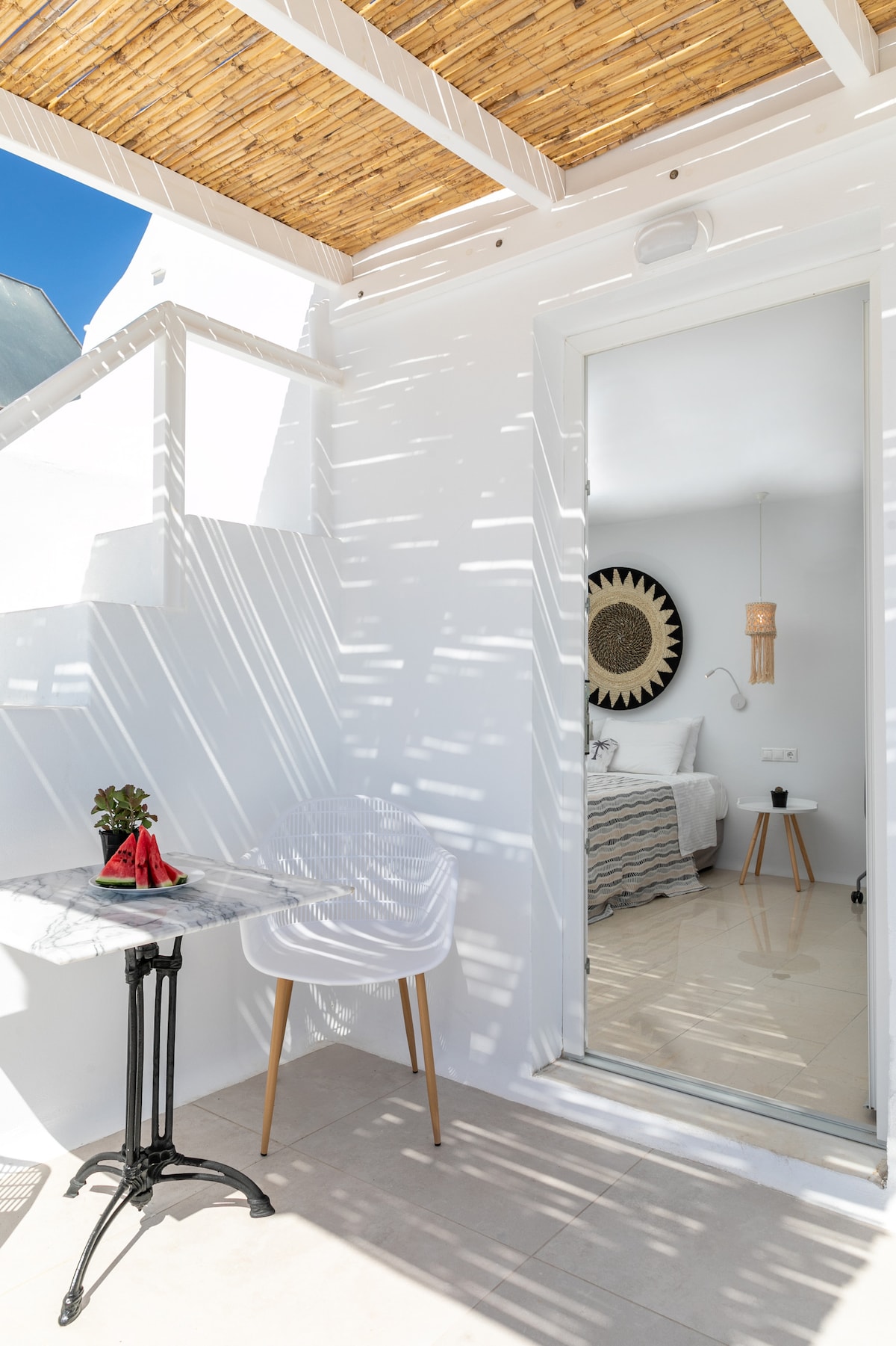 Bright, modern studio penthouse in a classic Greek island neighborhood in Naxos, just 100m from Saint George beach. Perfect for couples or friends, this serene retreat features two large, private rooftop patios for soaking up the sun. Enjoy a comfortable stay with high-end amenities and easy access to the vibrant town center. Sleeps 2 comfortably.