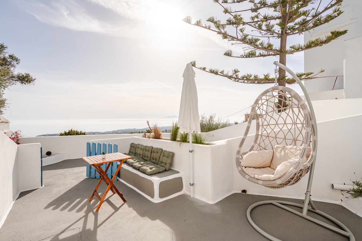 Charming Cycladic studio in the heart of Fira, just 7 minutes walking distance from the center. Enjoy a queen bed, private bathroom, fully equipped kitchenette, smart TV, WiFi, air conditioning, and a private courtyard with breathtaking sea view. Daily cleaning included. Don’t miss the unforgettable sunrise from your balcony!