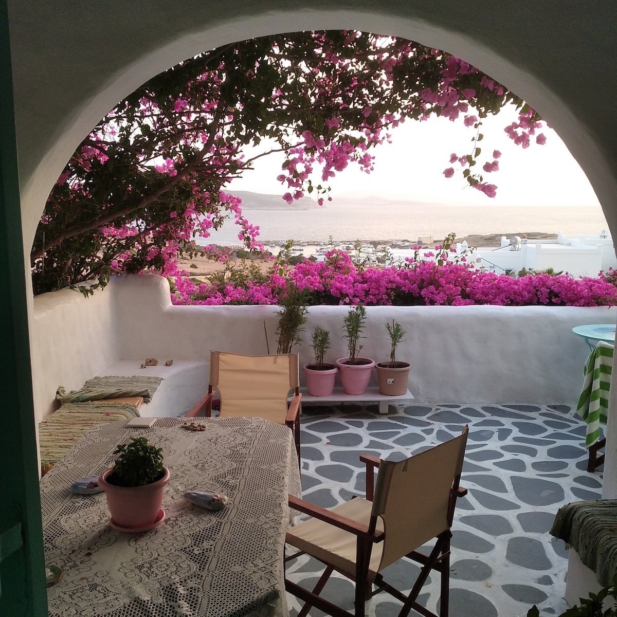 Welcome to Aikaterinis vintage apartment in the heart of Naousa, a gorgeous two room home with early check in and late check out until 3 p.m. The place is just 300m away from the venetian port and castle. You reach the restaurants and shops in 3 minutes by feet. The house is in the typical cycladic architectural beauty with modern details. The main bus stop is just 1 minute away. You can go every hour to Parikia and the beaches, for e.g. Colimbithres, Agios Ioannis, Santa Maria, Punta Beach.