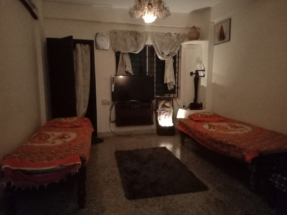 "An apartment with an amazing view, similar to that from the 41st floor." Relax With Your Friends and Family at this Peaceful Homestay. Other specialty of this place is its: Smart TV with Netflix, Amazon Prime & Disney Hotstar High speed broadband (~200+ Mbps) Unlimited Purified water - L.G Water Purifier. Kitchen with all amenities (Shared) Washing Machine (Shared) Water heater / Geyser Cupboard with Hangers Air Conditioner & Fan Separate Club House (charges apply)