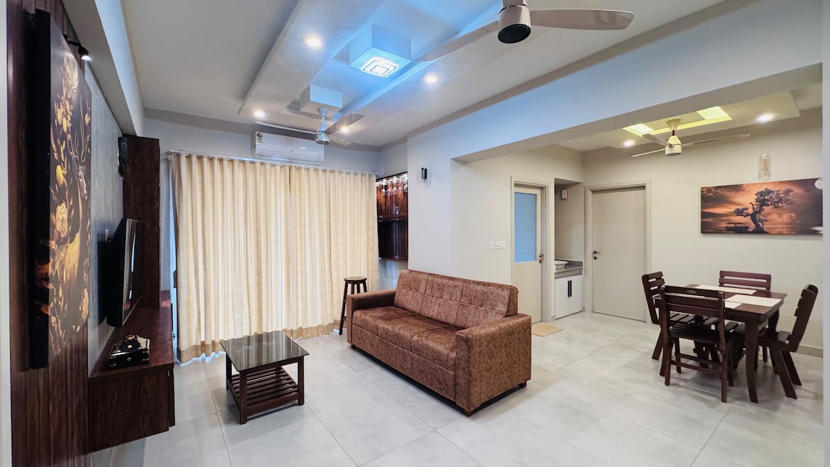 EVARA is a luxurious, fully air-conditioned apartment certified by the Ministry of Tourism, offering premium furnishings and top-tier amenities for a peaceful stay. Just 100m from KIMS Hospital and close to Lulu Mall, Kochuveli Railway Station, Technopark, and the International Airport, it’s perfectly located in Trivandrum. Enjoy river-facing balconies, a cozy patio, Dolby Atmos sound, a fully equipped kitchen, and modern comforts. Ideal for families, friends, or business travelers.