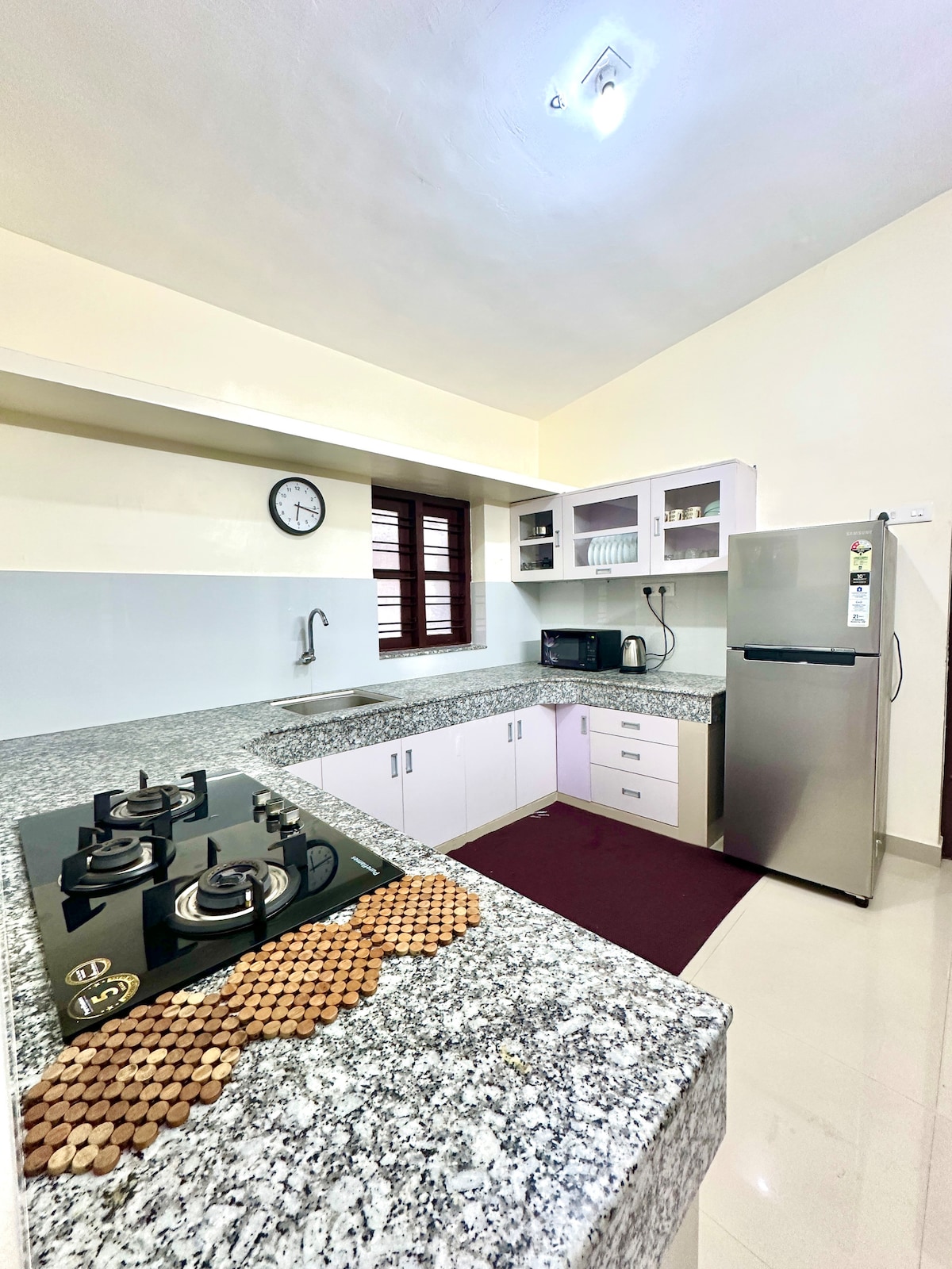 In just less than 1 km from Shri Padmanabhaswamy temple, 1.5 Km from Central Bus stand & Railway station, 1 Km from Terminal 2 (International Airport), 4-5 km from Terminal 1 (Domestic airport) is our serene space. A Spacious 2BHK apartment on the first floor of our home with attached Bathrooms, a pvt Balcony, fully equipped Kitchen with Refrigerator & Washing machine & other accessories for a comfortable stay in a calm environment and most importantly safe place for families & women travelers.