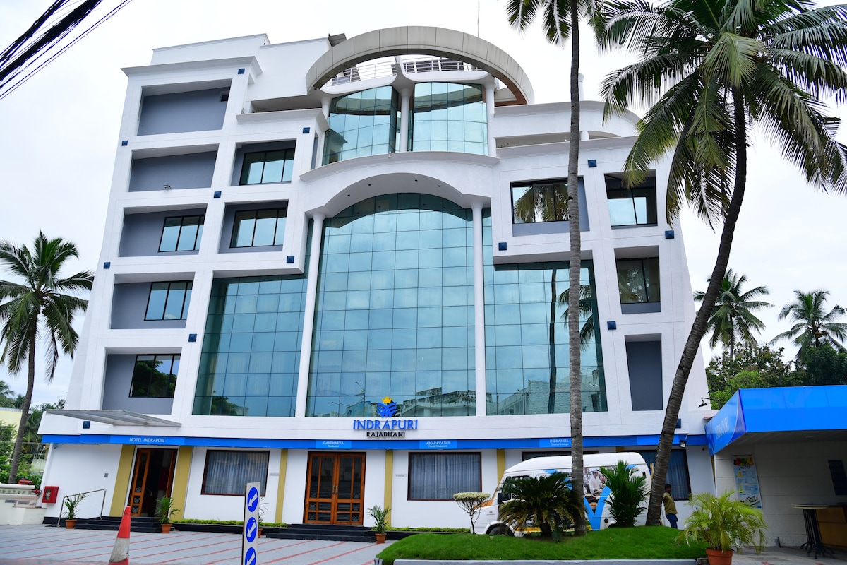 INDRAPURI RAJADHANI 3 star business class hotel situated in vanross junction – the heart of Trivandrum city - 6 kilometre away from Airport ,only one km away from railway station and central bus station. Indrapuri Rajadhani’s intimate setting and prime location are favorite among leisure travelers as well as business travellers. Splendorous and majestic appearance of Indrapuri gives it a celestial feel.
