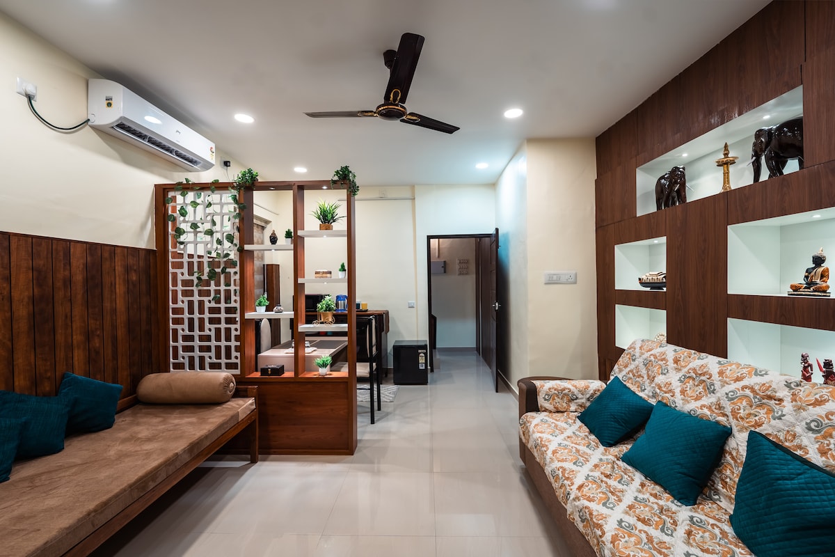 Welcome to our home located in a calm, quiet, and peaceful residential neighborhood. All guest rooms are on the first floor of the house, while we stay on the ground floor, ensuring both privacy and easy assistance when required. Two rooms with two Bathrooms - Ideal for up to 4 guests. Note - Extra bedrooms available for larger groups at ₹500 per additional guest (up to 4 guests).