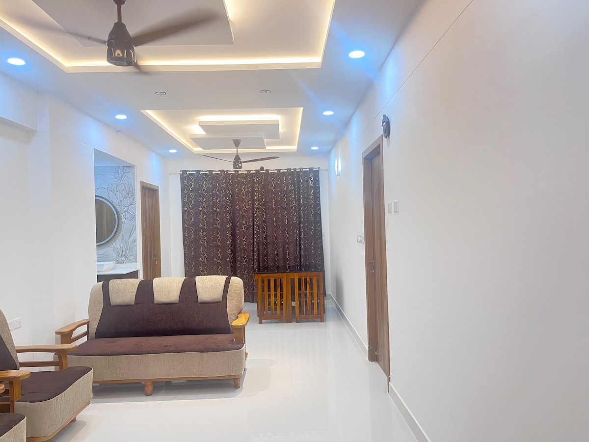 Fully furnished 3 BHK Flat, is set in Trivandrum . 250 Mtr from KIMS Hospital, 2 KM from Lulu Mall as well as 5 Km from trivandrum International Airpot The spacious air conditioned apartment consists of 3 bedrooms with attached Bathrooms and the kitchen is fitted with a fridge. This property offers free private parking. Infosys is 4 Km from apartment, 5.8 Km from Napier Museum, 5.7 Km from Sri Chitra Art gallery, 6.9 KM from Sree Padmanabha Swami Temple, 6.4 Km from Kanakakkunnu Palace