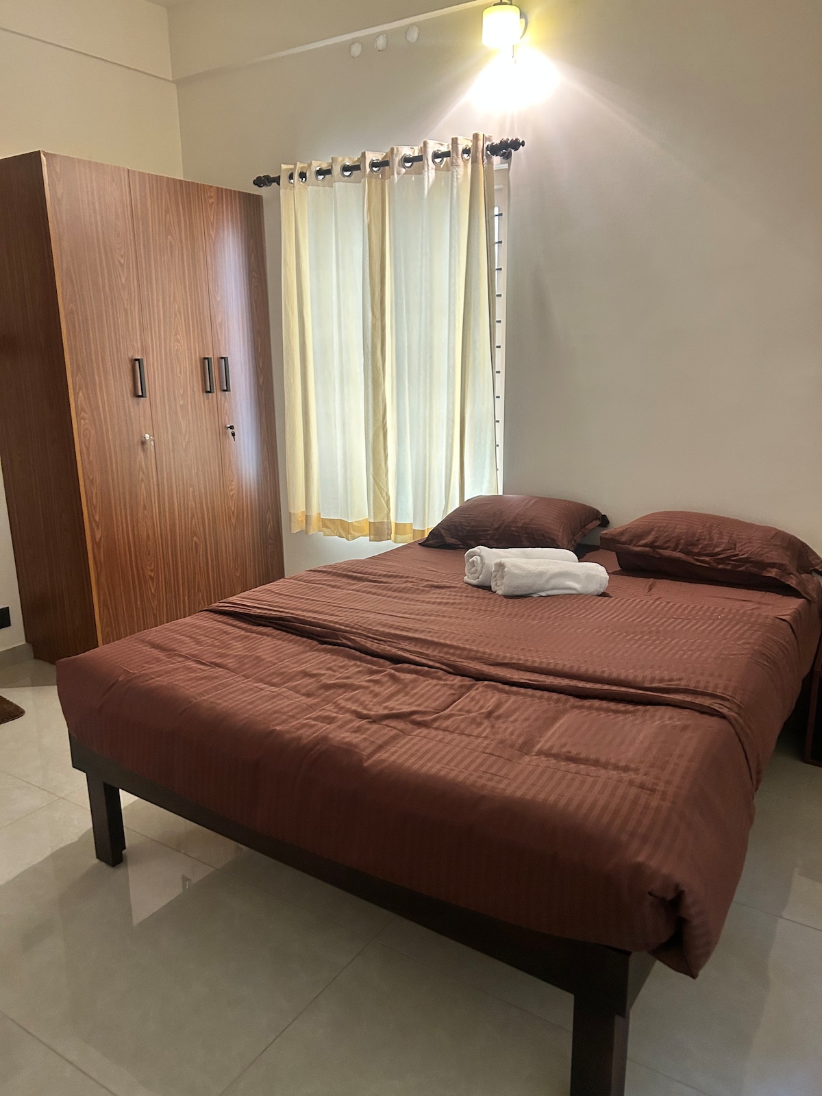Enjoy a comfortable and peaceful stay at our fully furnished service apartment near Technopark, Kazhakkottam. Ideal for families, couples, travellers, and business guests. The apartment includes a clean bedroom, private bathroom, Wi-Fi, TV, balcony, and kitchen facilities. Located close to Technopark, Greenfield Stadium, railway station, airport, and major restaurants. Perfect for short and long stays with 24/7 support.