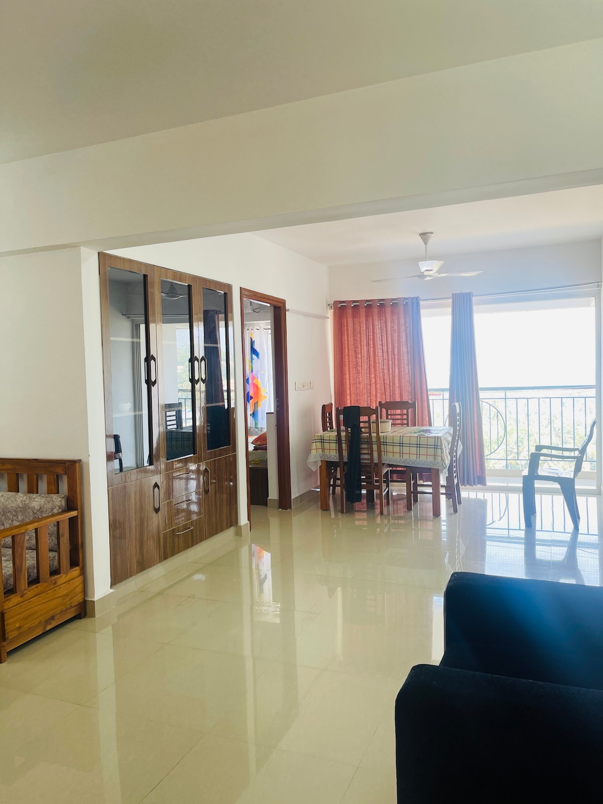 We welcome you to Laus Deo! Embrace the tranquility high above the city and make your stay truly memorable in our fully furnished, couple-friendly corner flat on the 9th top floor. room 1: one king size bed with AC bedroom. room 2: one sofa bed with AC bedroom Extra beds on demand. Amenities: TV with high-speed WiFi,fridge,washing machine,kettle,geyser , kitchen equipped with basic cooking utensils and gas connection,wardrobes, RO water purifier and a dedicated parking space (open parking)