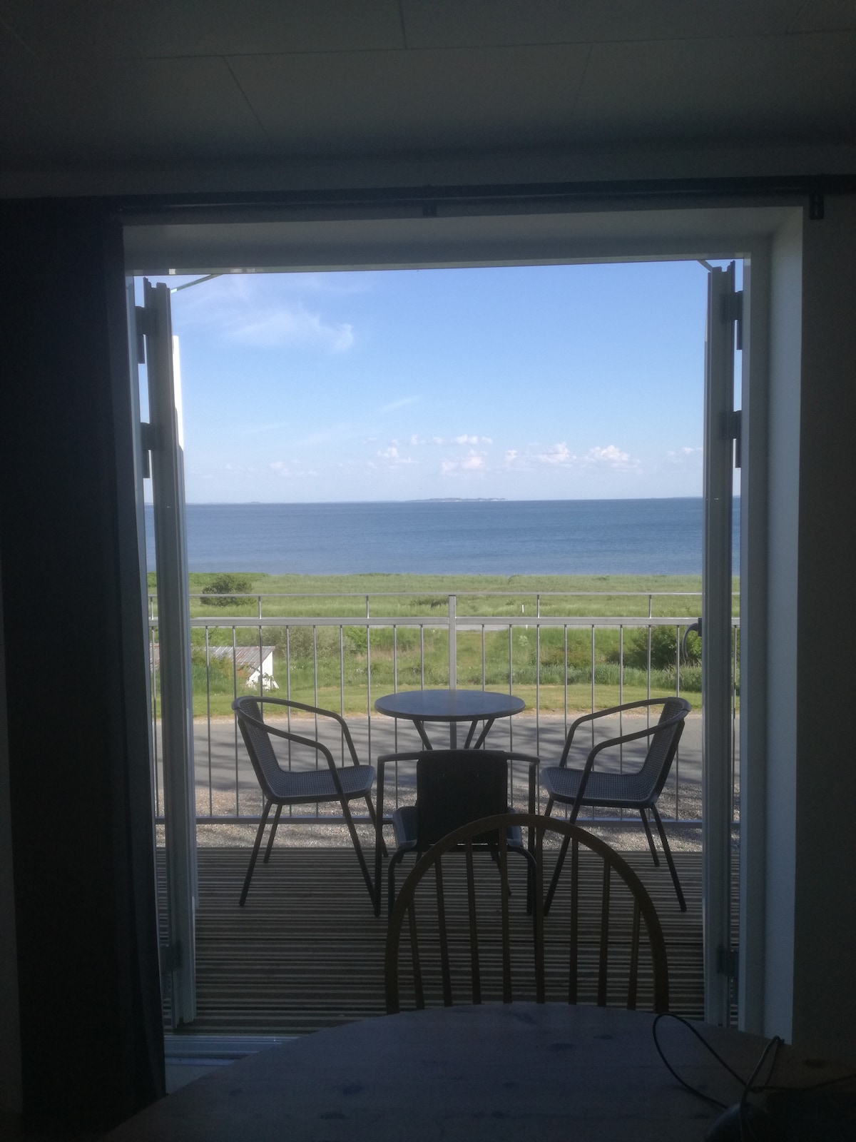 Lejlighed med panoramaudsigt over Limfjorden og egen indgang. Fra stue, køkken og to af de tre soveværelser er der fri fjordudsigt til Livø, Fur og Mors. En helt unik rummelig lejlighed på 80 kvartmeter med 6 sovepladser plus en baby seng. Der er tv med Netflix mm i stuen. Der er toielet og bad i lejlighden. Lejligheden er 1. salen i et stuehus på en trelænget gård og er fuldstændig nyrenoveret i 2017.Af seværdigheder kan nævnes National park Thy.