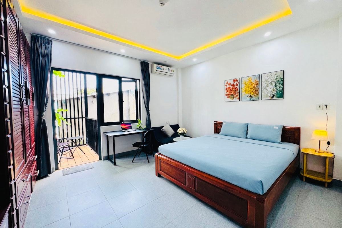 TeeMi House is located in Central Danang, which is 5 minutes walk to Han Bridge and 5 minutes walk to Han Market with 5 bedrooms with private bathrooms, a lovely rooftop patio and a swimming pool for kids, lovely living room connecting to dining and fully equipped kitchen area. The entire house is yours with private entrance, so TeeMi house is perfect for a family trip or a big group of friends. Also, TeeMi House is in a 2 metres wide residential alley by 3 minutes walking from main street.