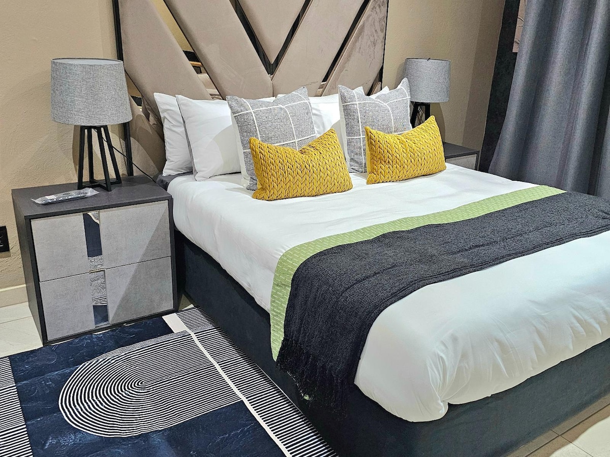 The Luxury Queen Room features a private entrance, and an en-suite bathroom with a bath, shower, and towels. Enjoy air-conditioning, coffee/tea facilities, a TV, a workstation, a patio with seating, Netflix, Showmax, and access to a communal pool.