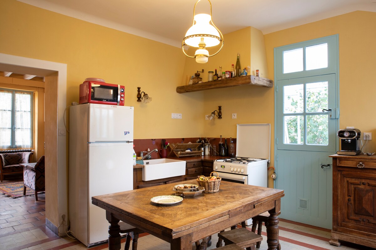 Logement jouxtant celui du propriétaire à 400 m d'une des plus belle forêt de chênes d’Europe. Maison familiale restaurée avec des matériaux sains ( terre, chaux, bois local, chanvre, tomettes...) Au rez de chaussée, un séjour de 26 m2 équipé d'une cuisine complète et d'un poêle à bûches, canapé convertible pour 2 couchages supplémentaires et salle de bain avec grande douche italienne, lavabo et WC. A l'étage une grande chambre de 25 m2, lit 160x200 et 1 lit d'une personne + un lit pour bébé.