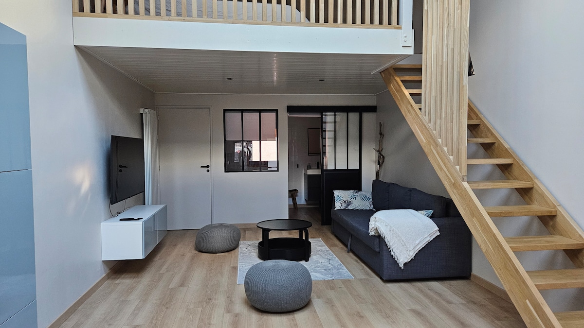 Newly built independent studio ideal place to relax, walk in the nearby Haut-Jura National Park, go skiing in the local resorts (3 km) or visit the centre of Geneva, CERN and Lake Geneva (15 min). It has a double sofa bed (1.60 m), a fully equipped kitchen with cooking utensils, a fridge, a microwave and a coffee machine, a bathroom with a shower, and a terrace with a garden. The room has Wi-Fi and a TV with Google Chromecast for streaming. Bed linen, towels and toiletries are provided.