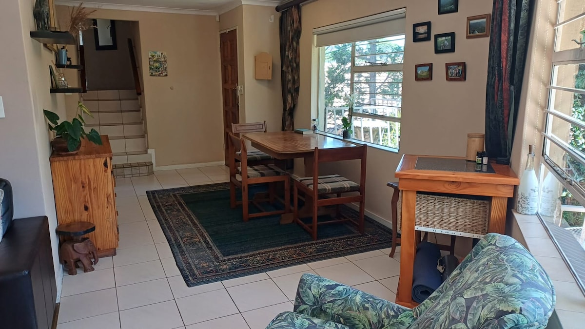 Comfortable accommodation for 2 Guests only Ring bell at gate when you arrive Offering open plan lounge and kitchenette with microwave (no stove) and bar fridge. TV with android box with Netflix. Spacious bedroom with en suite bathroom with a shower. Patio area with shared tranquil garden. Parking available for ONE car only. Private covered back patio.