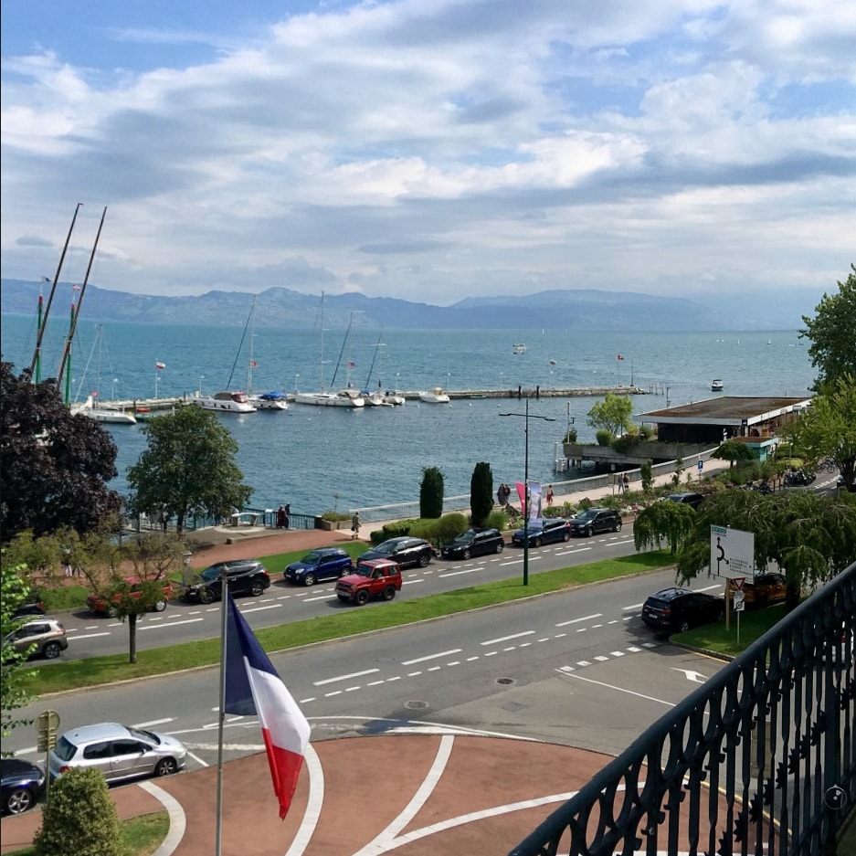 STUDIO IN A CHATEAU , + PANORAMIC VIEW OF LAKE LEMAN + IN THE CENTER + Completely renovated at the end of 2023, the charm of the castle common areas, the chirping of the birds, the rippling water of the lake... This unique accommodation is close to all the sites and amenities, right in the center of Evian, panoramic view, facing the boat pier for Geneva, Lausanne. Restaurants, supermarket, casino, pedestrian streets, beaches, funicular...everything is nearby!
