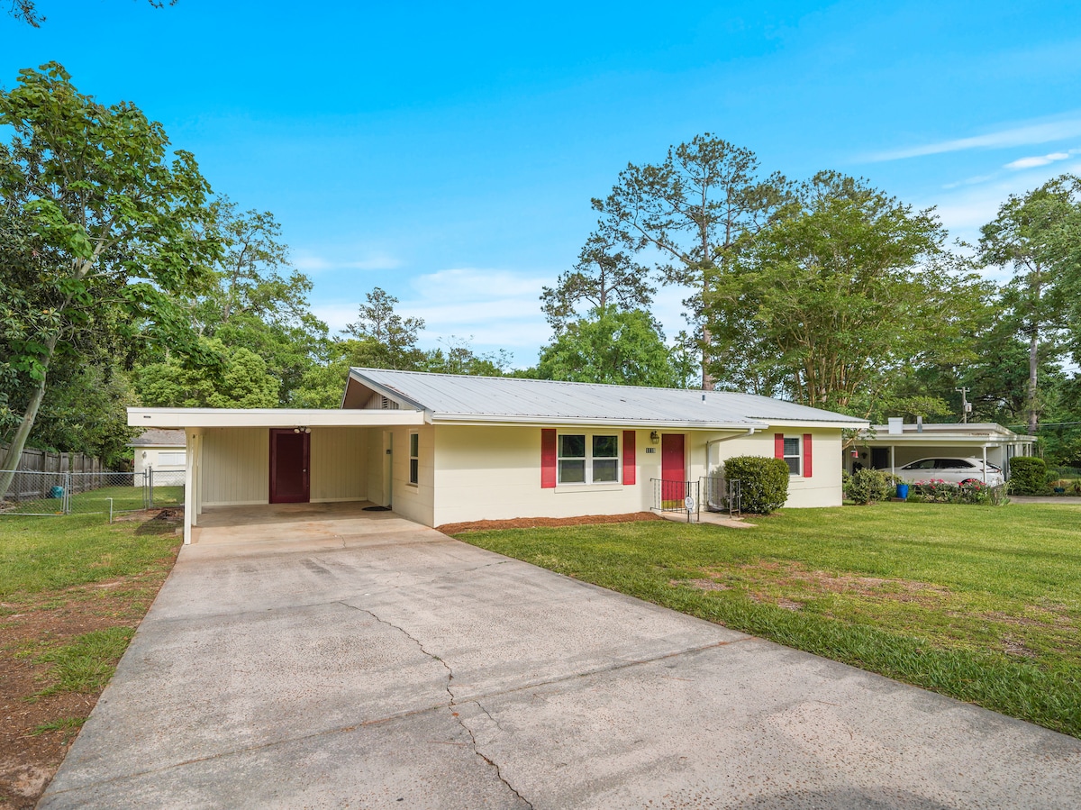Updated with brand new furniture! Cozy & comfortable, the Beachum House is a relaxation destination tucked away in a quaint, quiet neighborhood in downtown Tallahassee. This home is the perfect, peaceful getaway with quick access to Tallahassee's finest restaurants, shopping, and of course, the Florida State Seminoles! 2 minutes from Target, 3 minutes from the Governor's Square Mall, 5 minutes from Cascades Park, under 8 minutes from FSU. Oversized fenced back yard, perfect for doggos & friends!