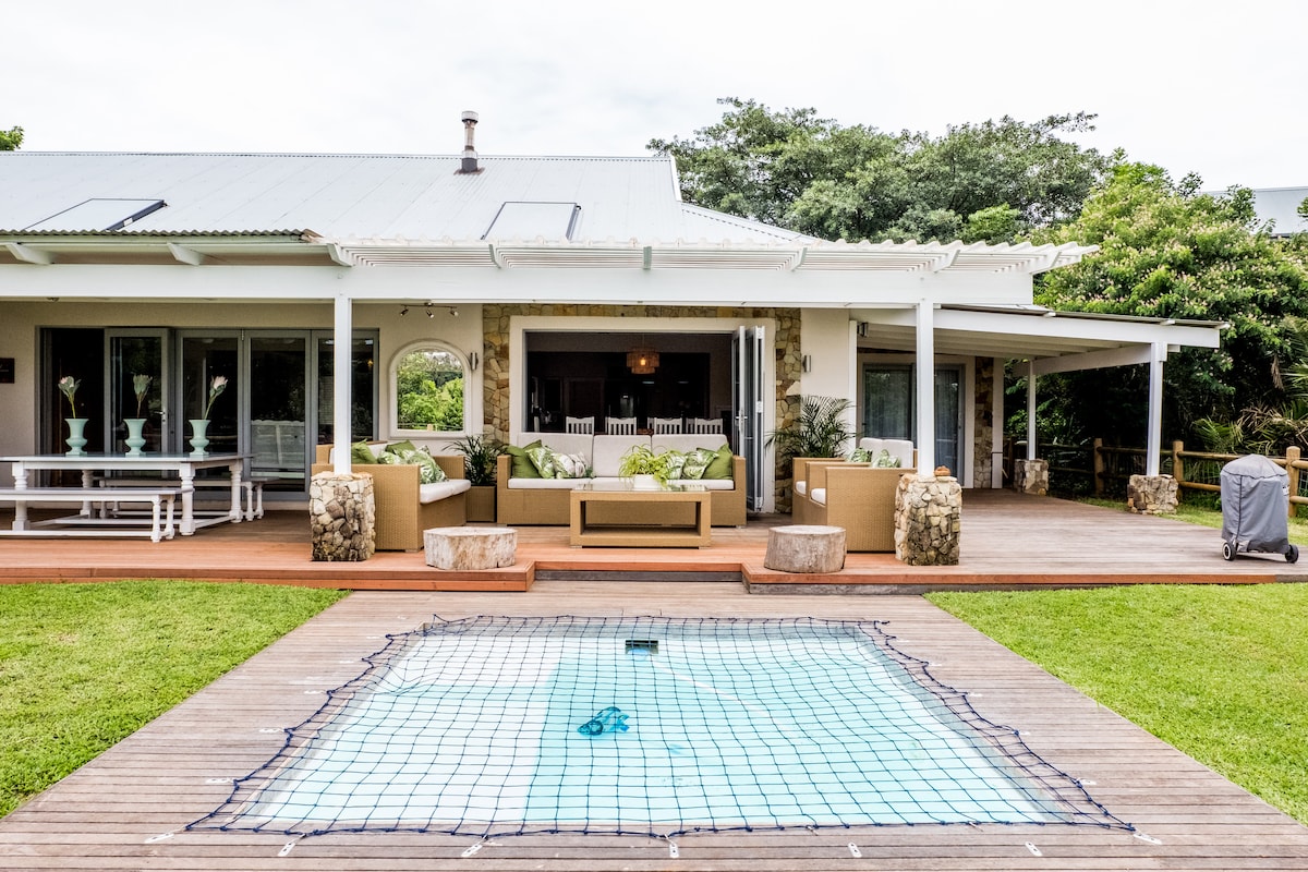 Country living so close to the sea! Situated on a secure, macadamia farm estate, this home is the perfect balance for active families who love the outdoor lifestyle, close enough for a day at the beach or the choice to enjoy the countryside with many outdoor activities. Horse riding, cycling, canoeing and walks in the fresh coastal air, is what is on offer on this secure Estate just 20 minutes from central Ballito. Holla Trails (Zip lining, bikes) and Sugar Rush close by for the adventurous.